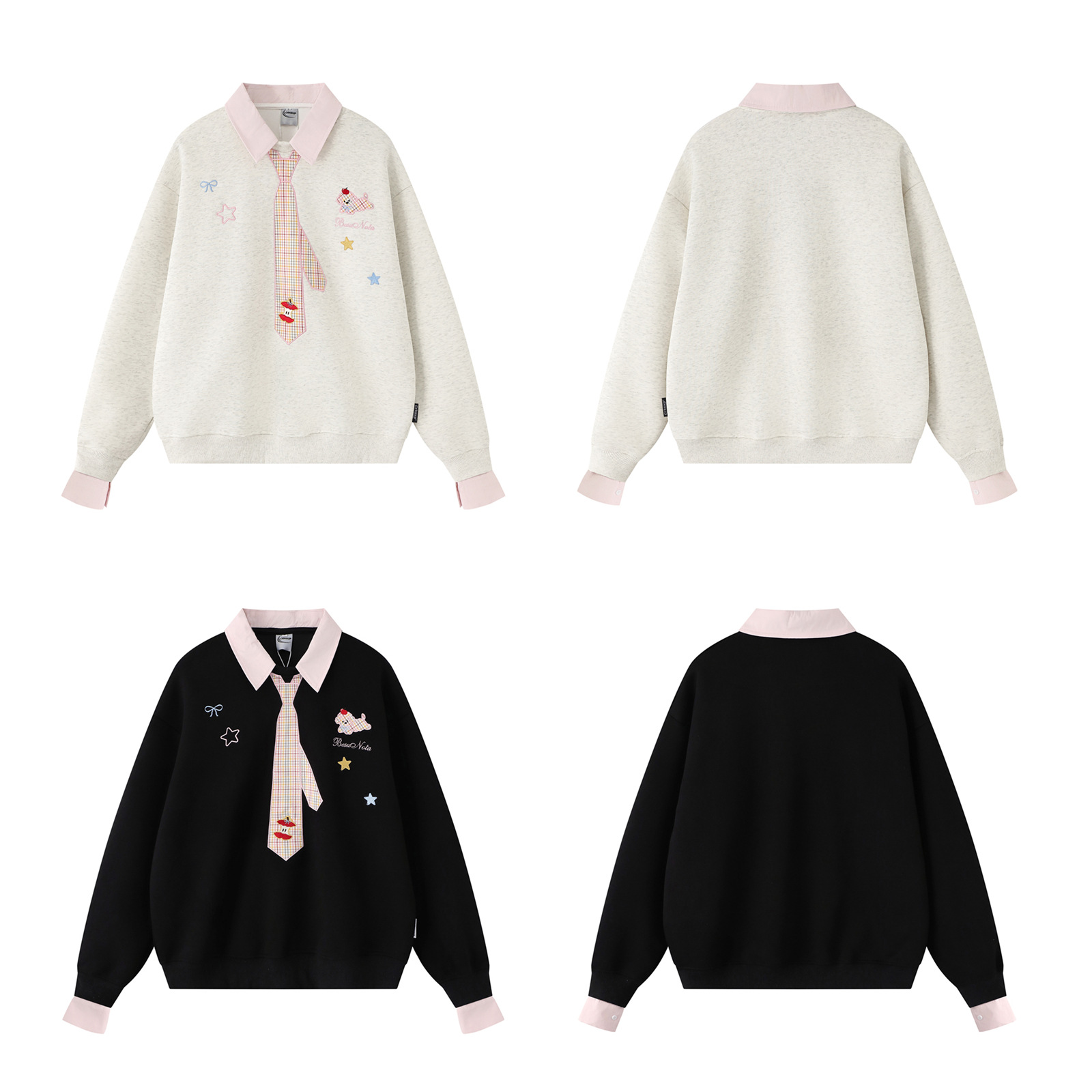 Turn-down Collar Faux Two-piece Loose Unisex Couple Hoodie